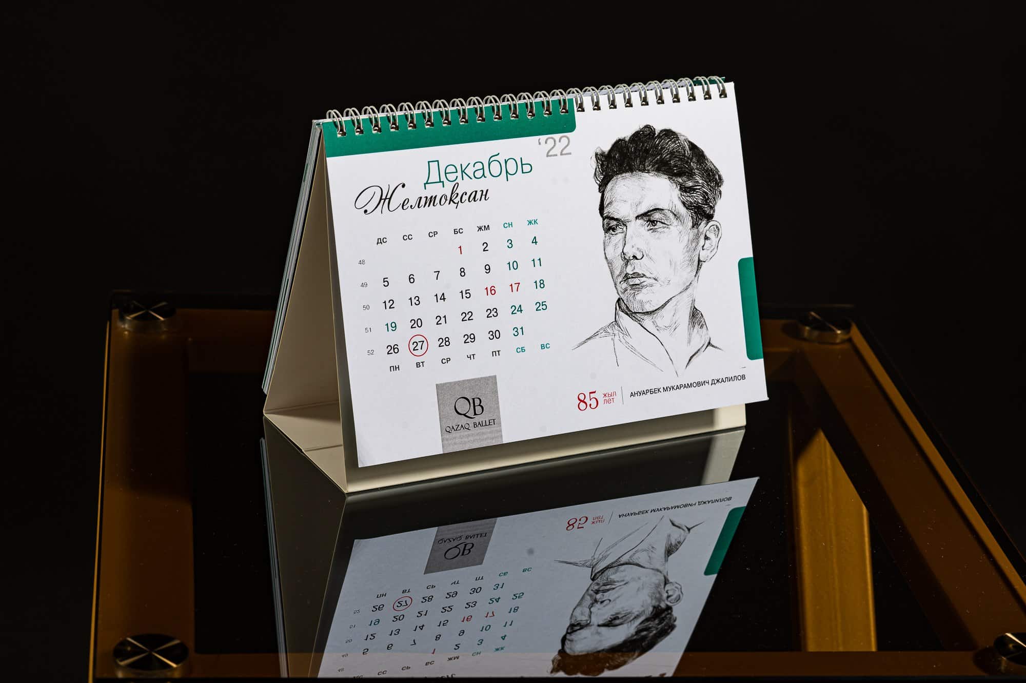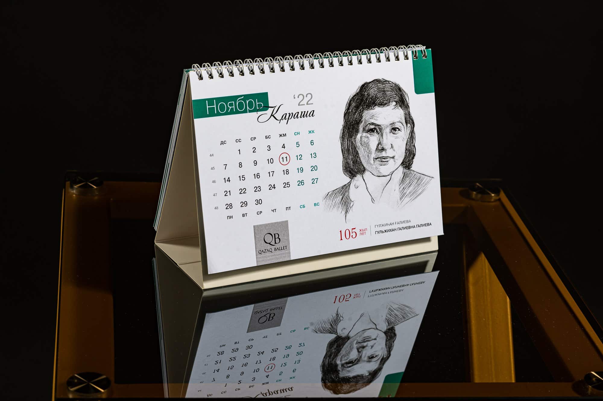On 26 October 2021, in Almaty, the anniversary calendar Figures of Kazakh Ballet was presented — a unique project by Qazaq Ballet Magazine that preserves the memory of the creators of Kazakh ballet and unites history, scholarship, and art in a single edition. This is more than a calendar: each page is a mini-encyclopaedia featuring the biography of a jubilee figure and their achievements, complemented by original graphic portraits that create a vivid visual image of the project’s protagonists.