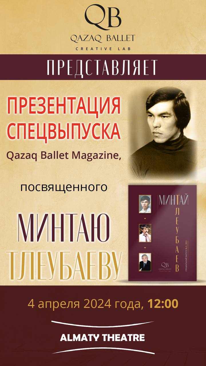 On 4 April 2024, as part of the «Orleu» 6th International Festival of Choreographic Educational Institutions, organised by the A. Seleznyov Almaty Choreographic School and held at Almaty Theatre, the presentation of the third special issue of Qazaq Ballet Magazine, dedicated to the Kazakhstani choreographer Mintai Tleubayev, took place.